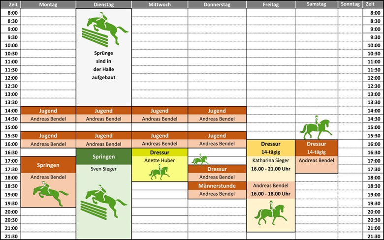 Reitstunden/Lehrgänge oder ähnliches außerhalb der angegebenen Zeiten, sind nur nach Rücksprache mit Michael Fugunt möglich!